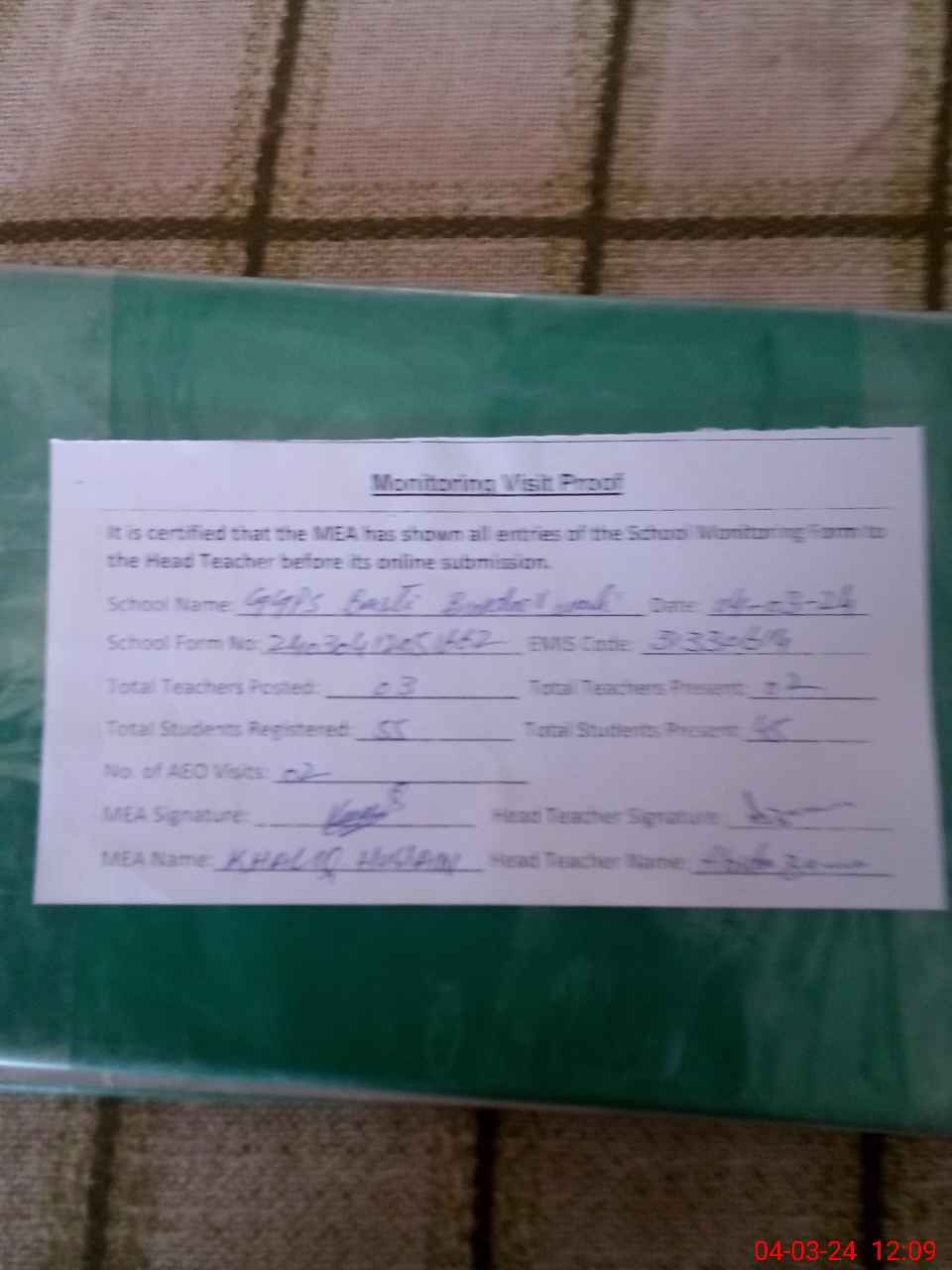 | EMIS Code: 31330614 | Name of School: GGPS BASTI BINDOOR WALI | |||