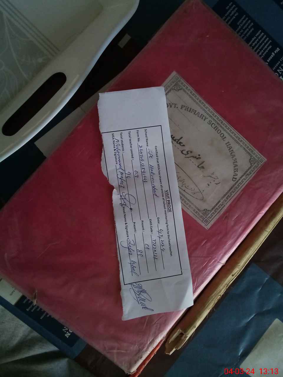| Attendance Register | Head Teacher | MEA with School | Visit Proof |