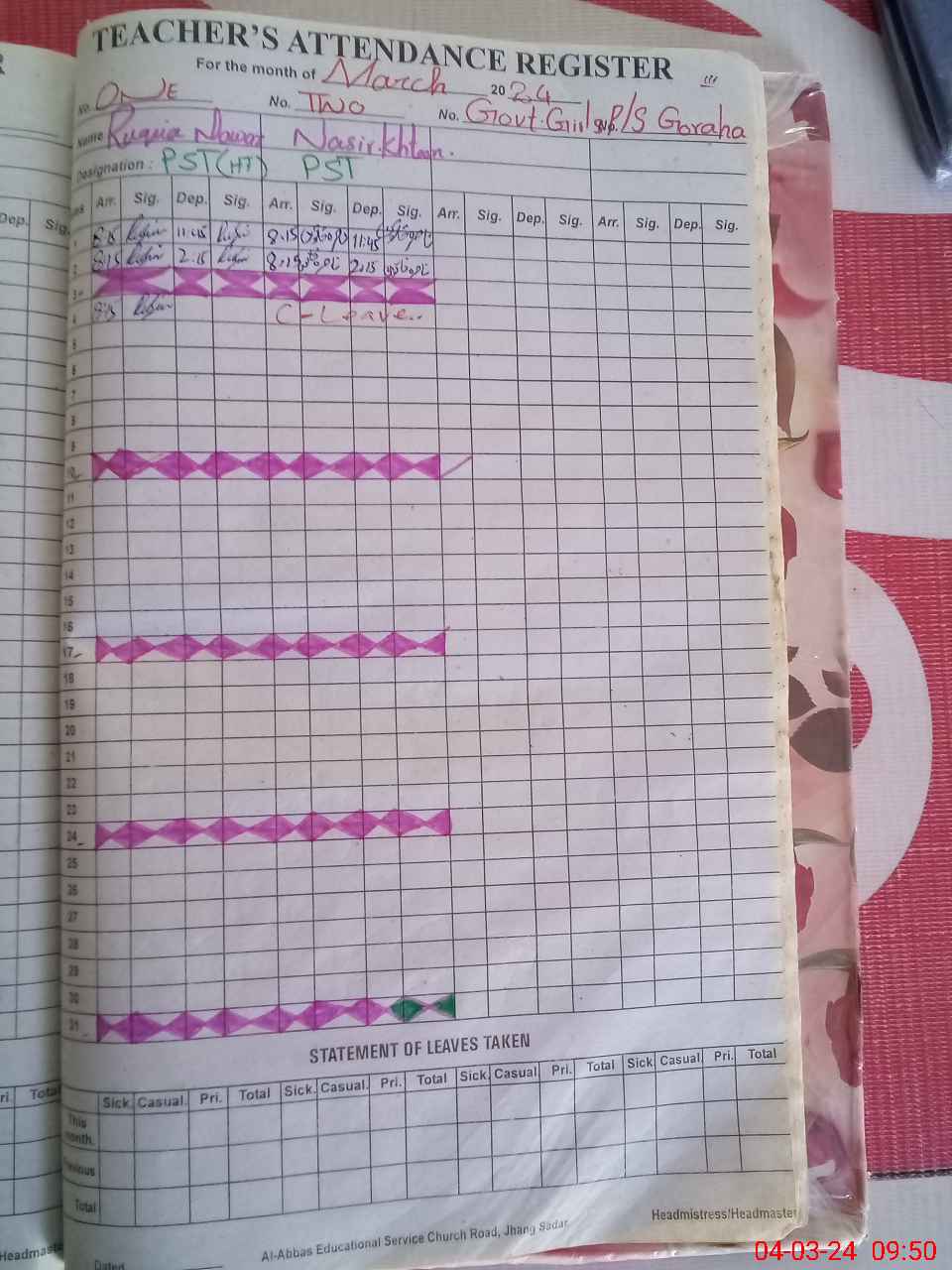| Name: RU**** NA**** Designation: (School Headmaster's/Headmistress's) PST Phone/Cell Number: 03**** |