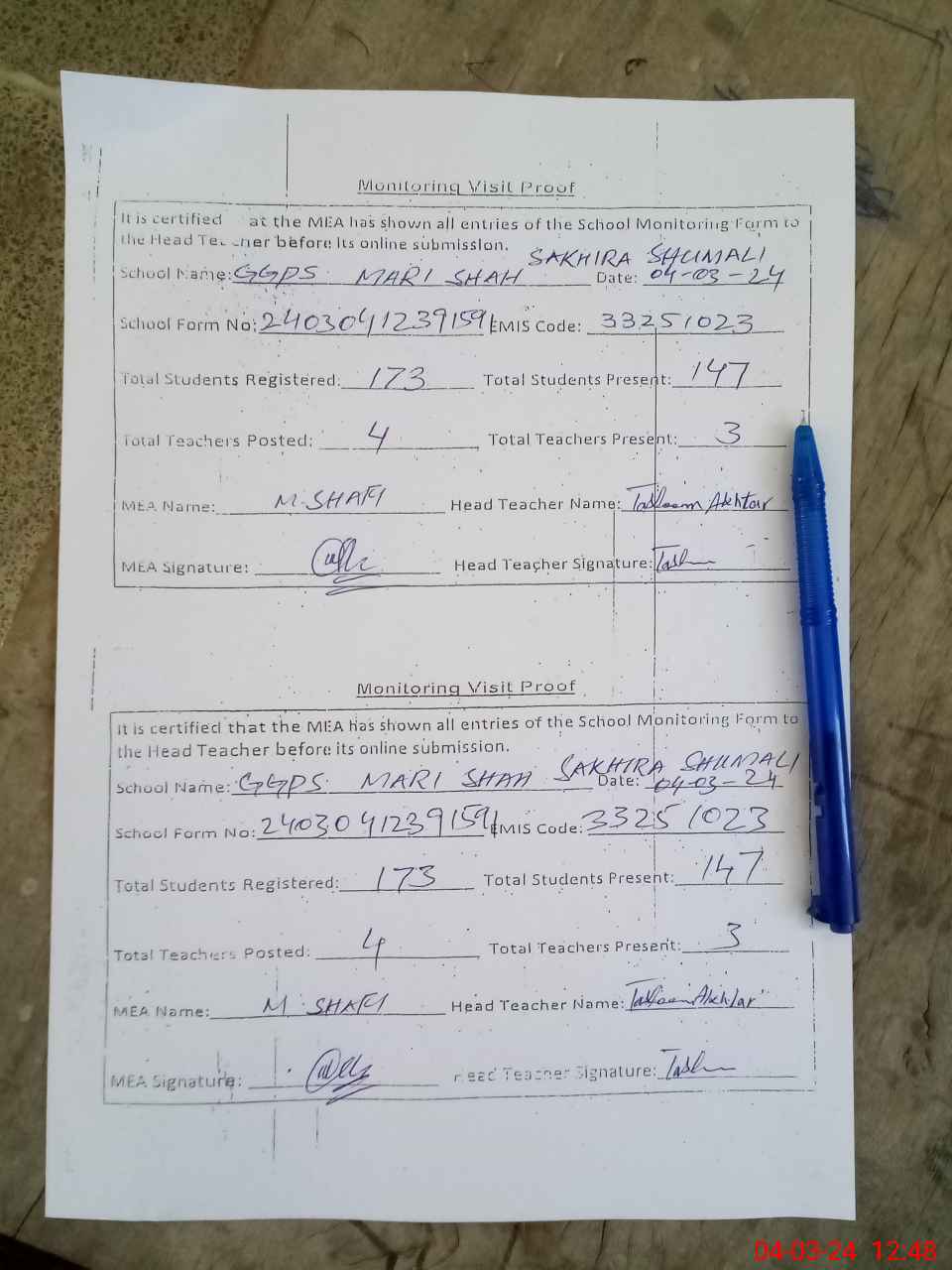 | EMIS Code: 33251023 | Name of School: GGPS MARI SHAH SAKHERA SHUMALI | |||