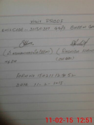 | Monitoring Date: 11-02-2015 | Start Time: 11-02-2015 12:23 PM | End Time: 11-02-2015 12:52 PM | Name of MEA: Mu**** Sa**** BN**** 33 | |