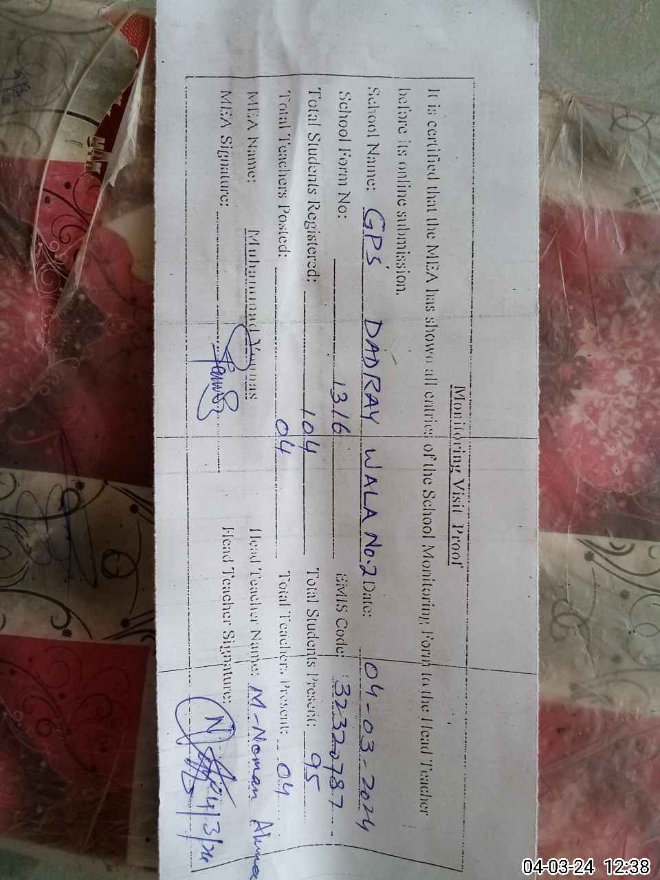 | EMIS Code: 32320787 | Name of School: GPS DADRAY WALA NO. 2 | |||