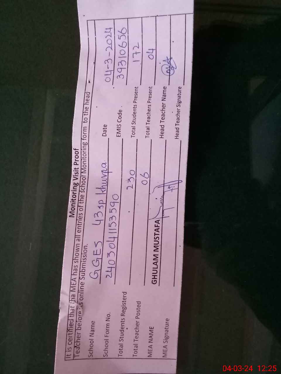 | EMIS Code: 39310656 | Name of School: GGES 43/SP KHURPA | |||