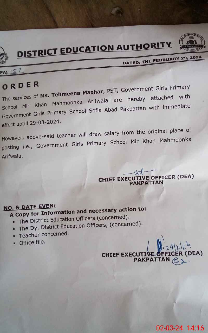 | District: PAKPATTAN | Tehsil: PAKPATTAN | Markaz: PAKPATTAN 5 - FEMALE | Level: Primary | |