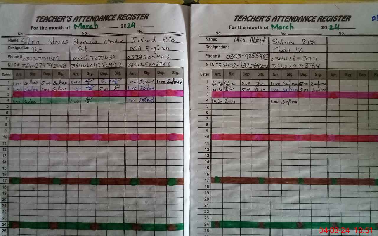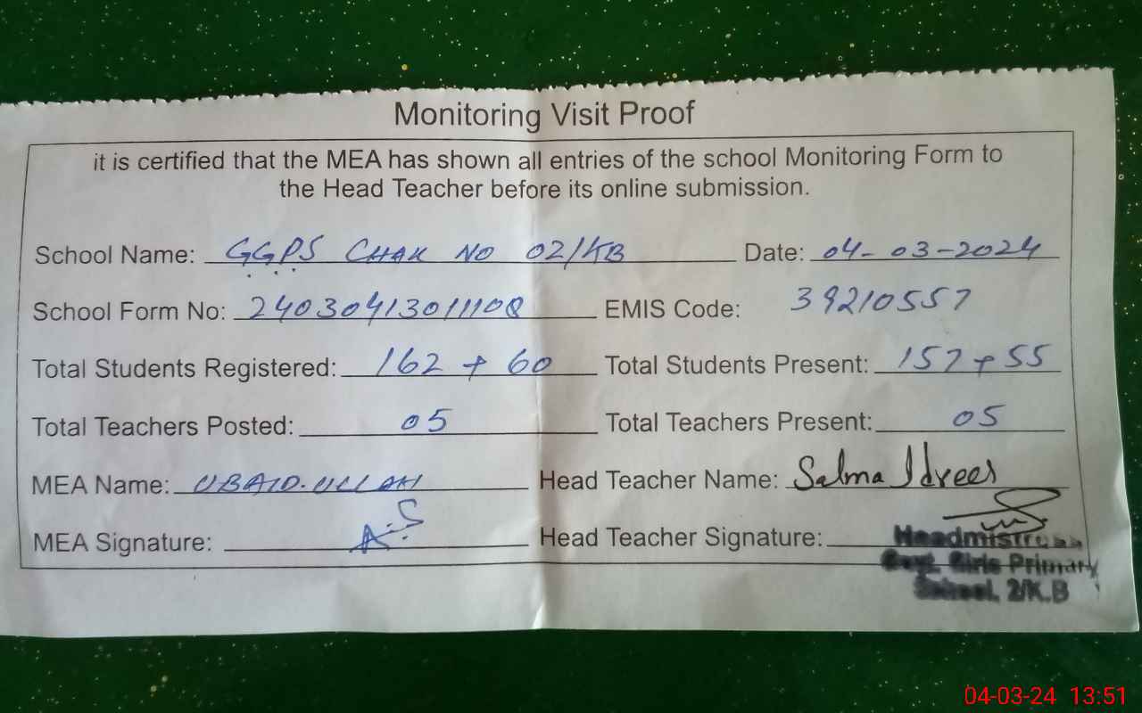 | Attendance Register | Head Teacher | MEA with School | Visit Proof |