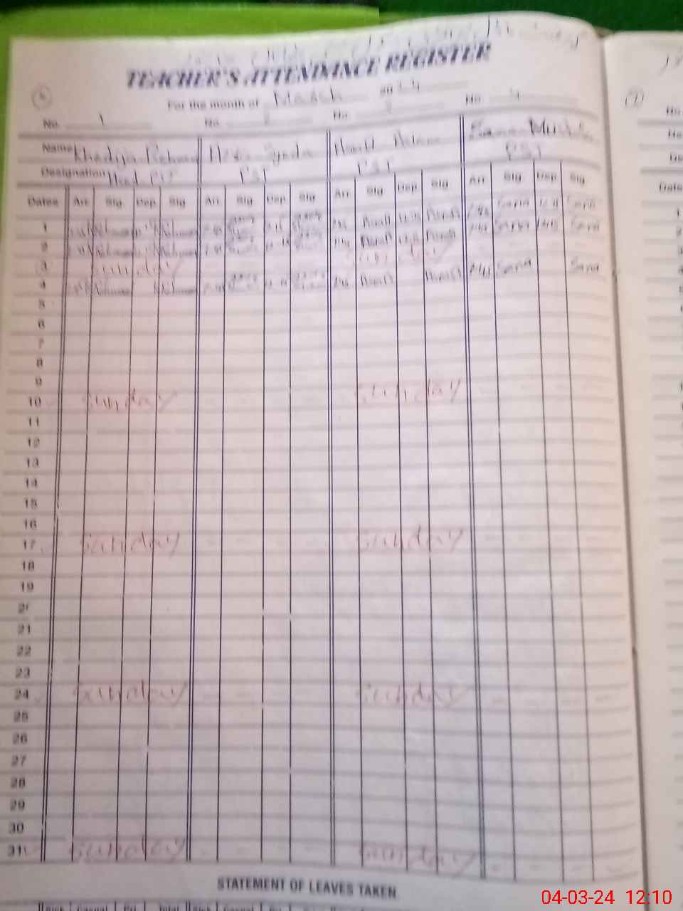 | Name: Kh**** Re**** Designation: (School Headmaster's/Headmistress's) PST Phone/Cell Number: 03**** |