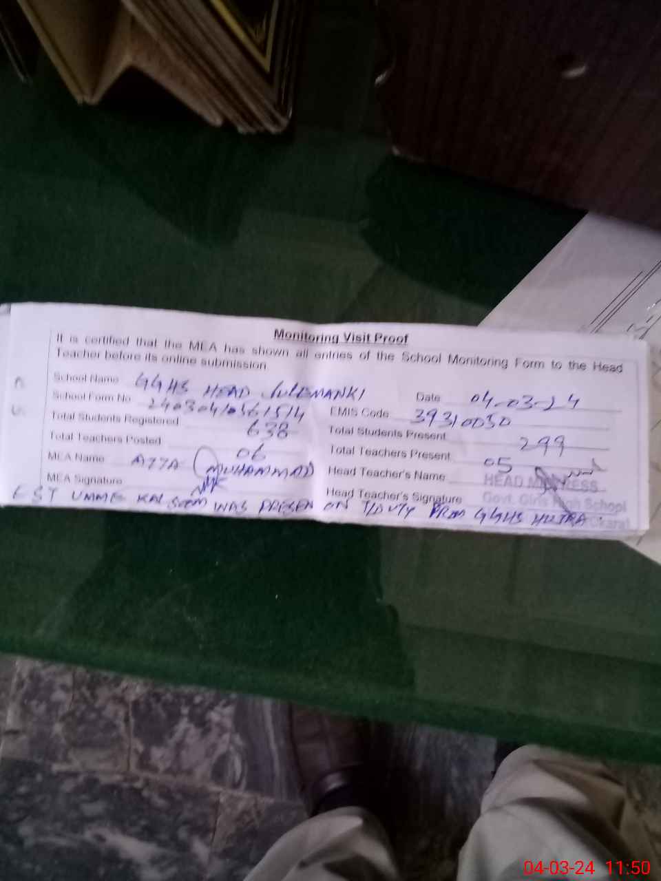 | EMIS Code: 39310050 | Name of School: GGHS HEAD SULEMANKI | |||