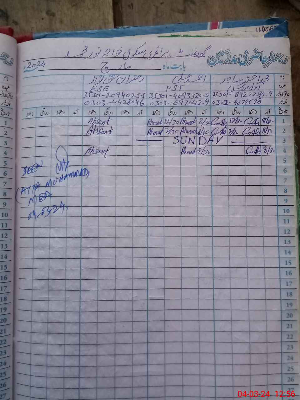 | 35**** | Ri**** Ha**** Na**** | Contract | 0 | 0 | 29 | 0 | 0 | 0 | 0 | 0 | 0 | Absent (Un-Authorized) | |