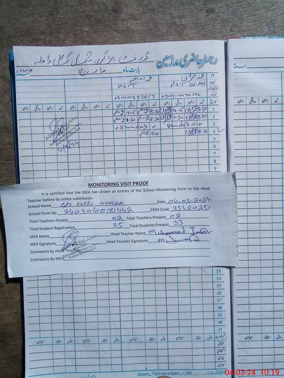 | EMIS Code: 35420251 | Name of School: GPS KOTLI WAHLLAH | |||