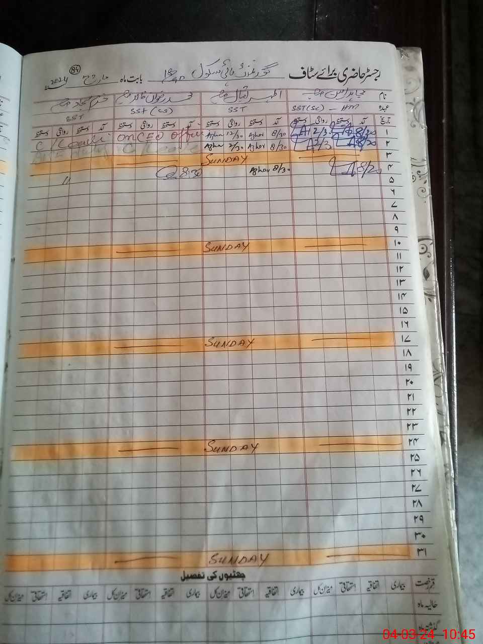 | 35**** | Mu**** Ha**** Kh**** | 3 | 1 | 0 | 0 | 0 | 0 | 0 | 0 | 0 | 0 | 0 | Exam Duty |