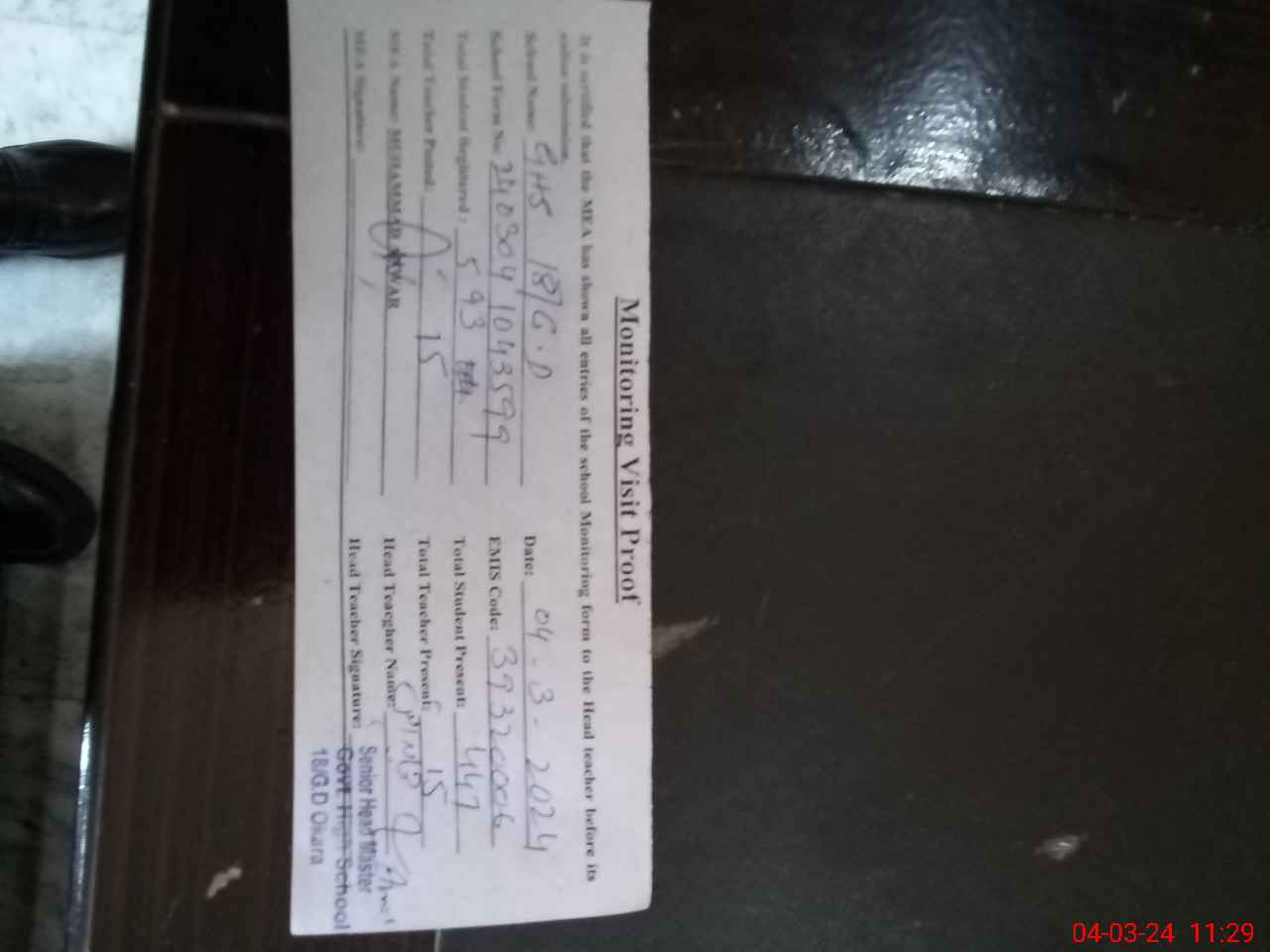 | EMIS Code: 39320006 | Name of School: GHS CHAK NO. 18/G.D | |||