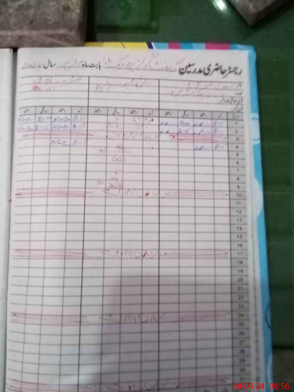 | CNIC | Full Name | Designation | R/C | Absence During Last Calender Month |