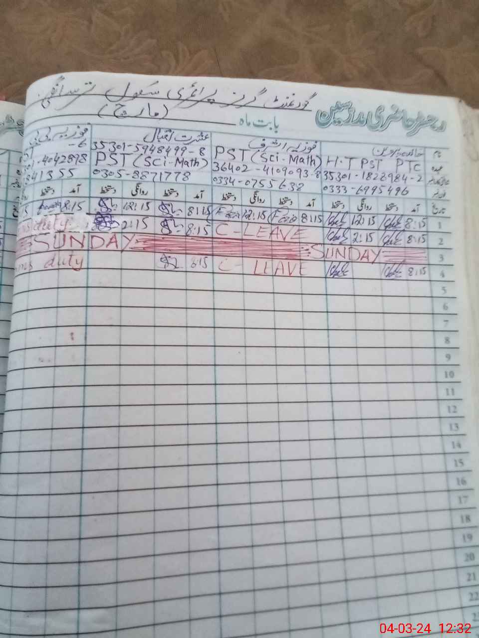 | Name: KH**** PE**** Designation: (School Headmaster's/Headmistress's) PST Phone/Cell Number: 03**** |
