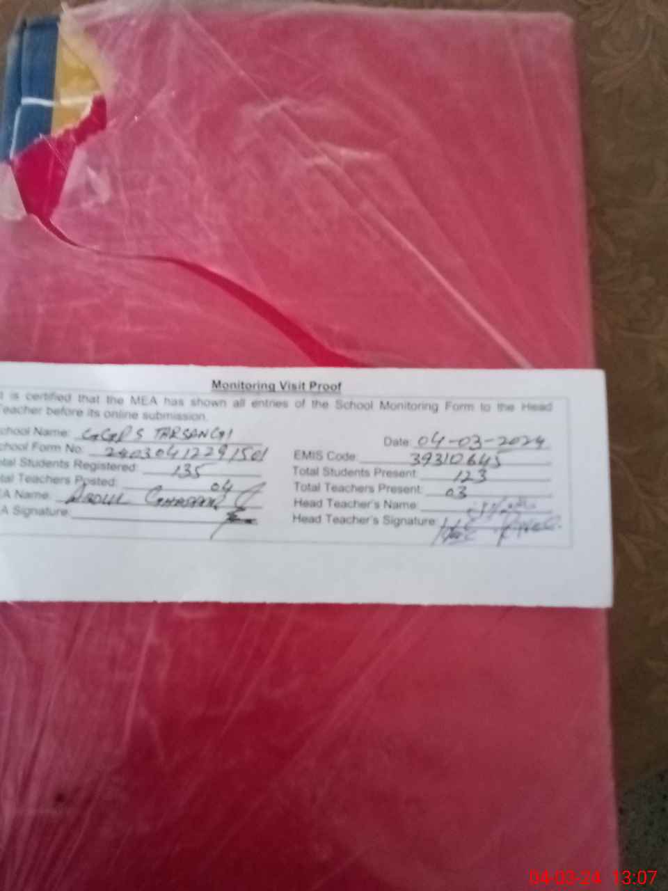 | EMIS Code: 39310645 | Name of School: GGPS TARSANGI | |||