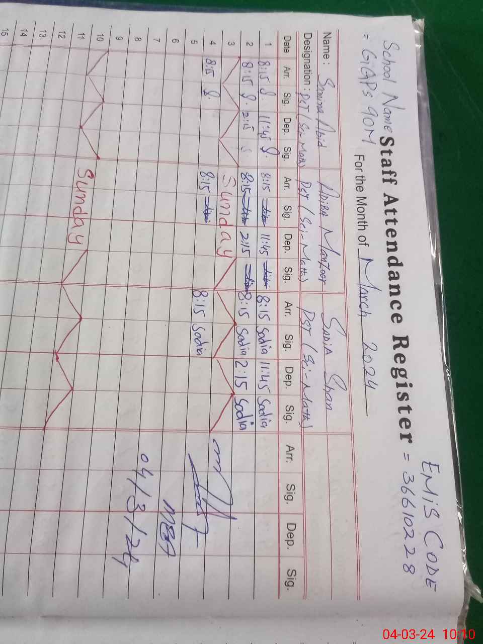 | Name: Sa**** Aa**** Designation: (School Headmaster's/Headmistress's) ESt Phone/Cell Number: 03**** |