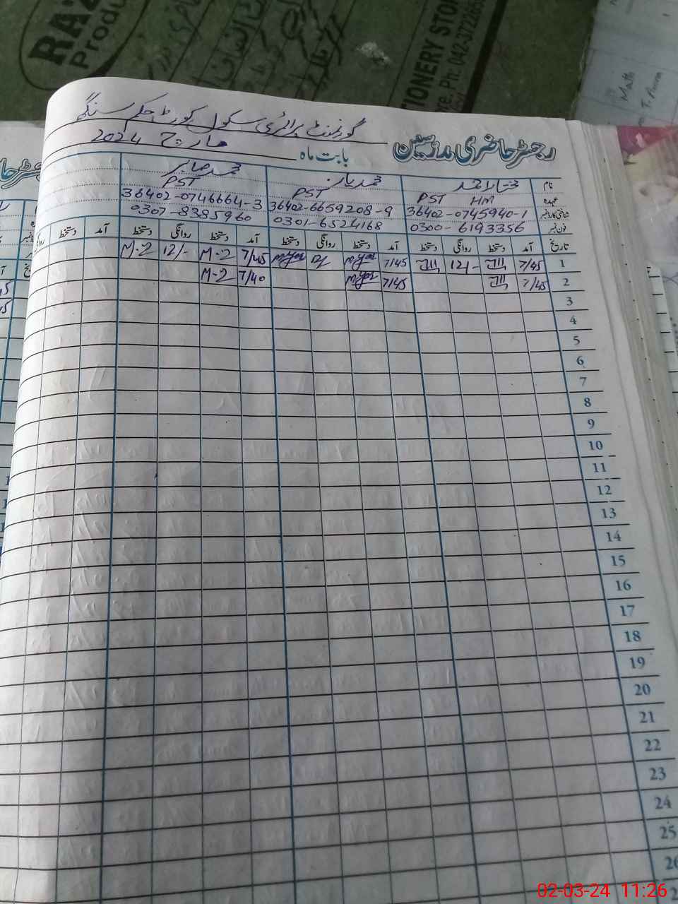 | Name: MU**** AH**** Designation: (School Headmaster's/Headmistress's) PST Phone/Cell Number: 03**** |