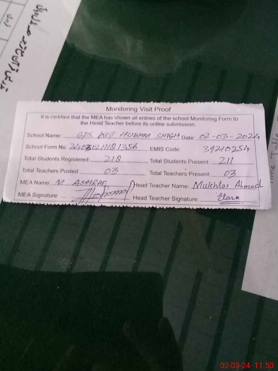 | EMIS Code: 39210254 | Name of School: GPS KOT HUKAM SINGH | |||
