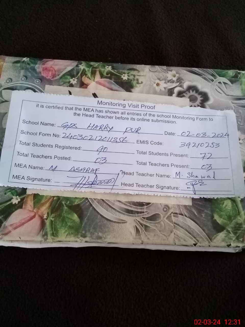| EMIS Code: 39210253 | Name of School: GPS HARRY PUR | |||