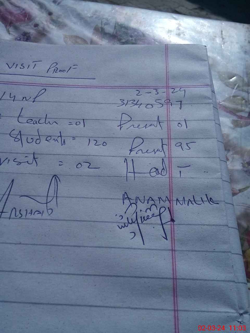 | Attendance Register | Head Teacher | MEA with School | Visit Proof |