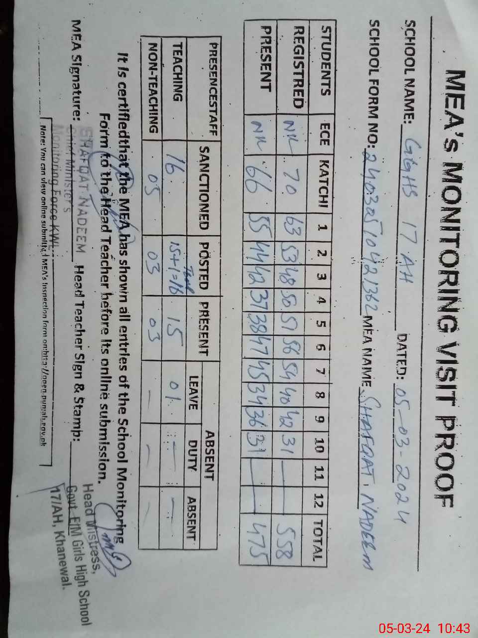 | EMIS Code: 36420107 | Name of School: GGHS 17/AH, KHANEWAL | |||