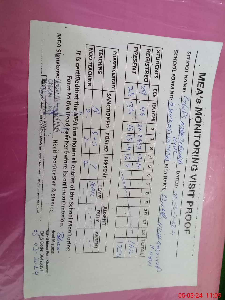 | EMIS Code: 36420357 | Name of School: GGPS MARZI PURA, KHANEWAL | |||
