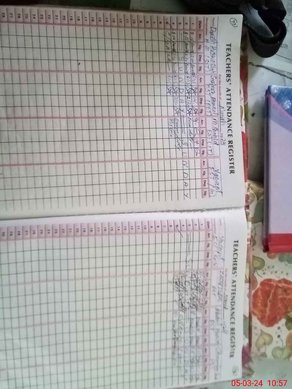 | Name: Mu**** Qa**** Designation: (School Headmaster's/Headmistress's) E.S.T.(G) Phone/Cell Number: 03**** |