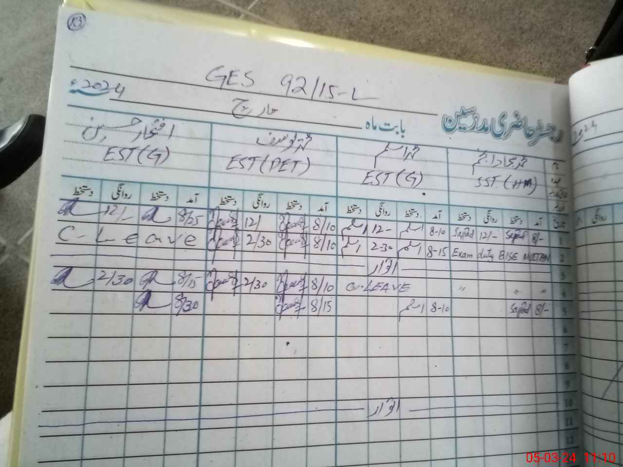 | Leave | Duty | Absent | Maternity | Medical | Ex- Pak |