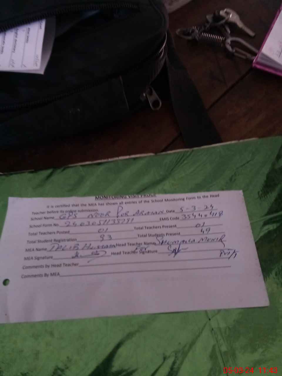 | Attendance Register | Head Teacher | MEA with School | Visit Proof |