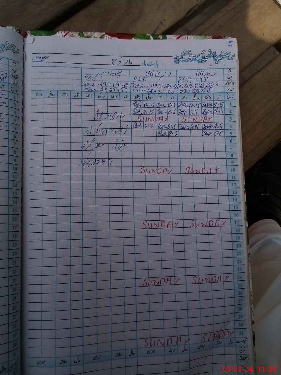 | CNIC | Full Name | Designation | R/C | Absence During Last Calender Month |