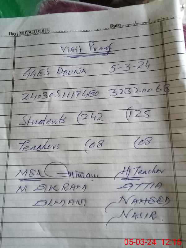 | District: KOT ADU | Tehsil: KOT ADU | Markaz: DAUNA- FEMALE | Level: Middle | |