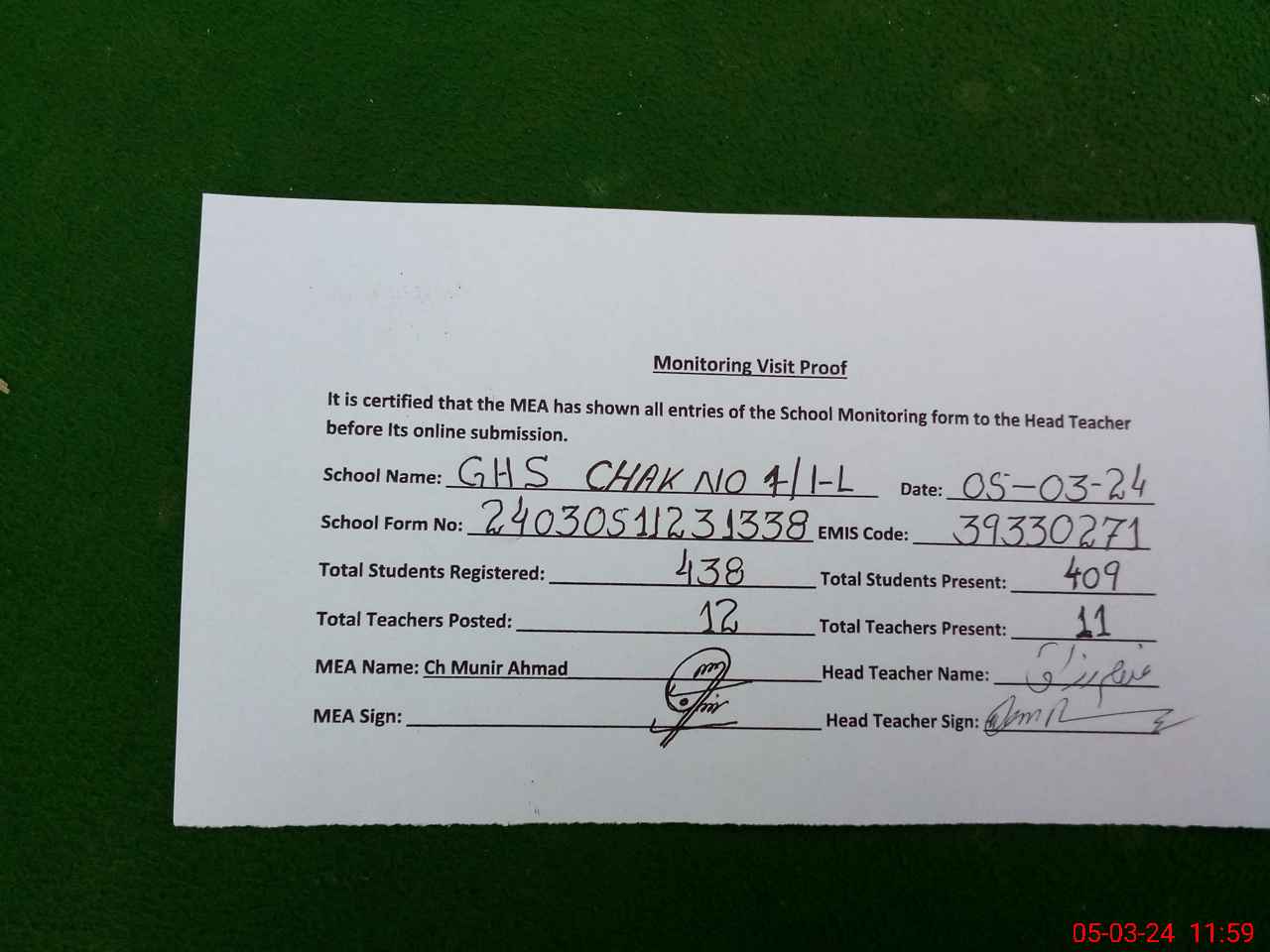 | EMIS Code: 39330271 | Name of School: GHS CHAK NO 7/1.L | |||
