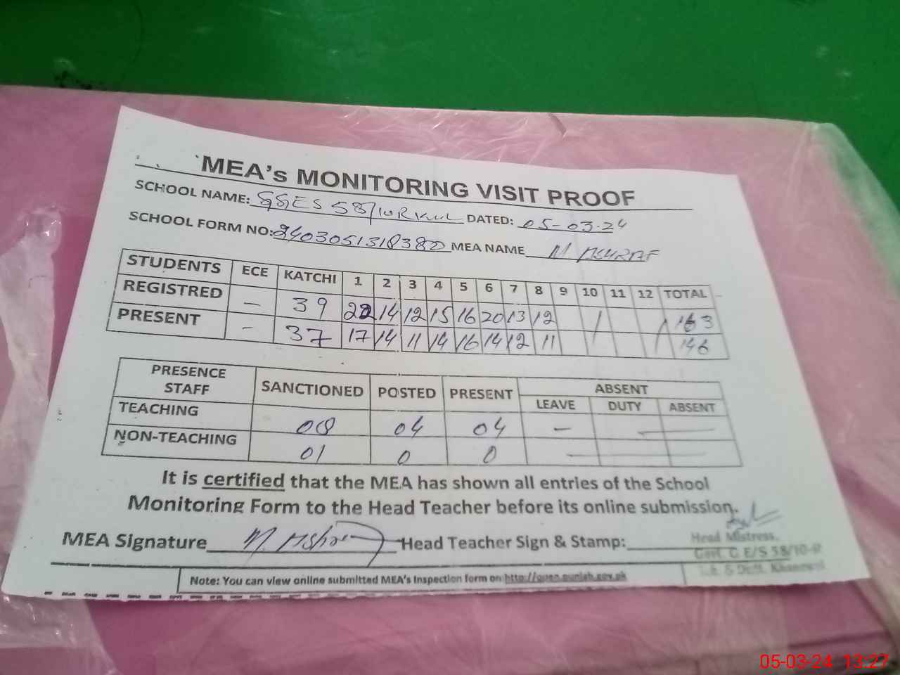 | EMIS Code: 36420404 | Name of School: GGES 58/10-R, KHANEWAL | |||