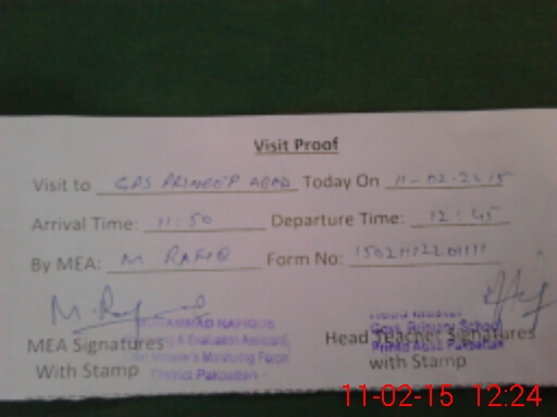 | Attendance Register | Head Teacher | MEA with School | Visit Proof |