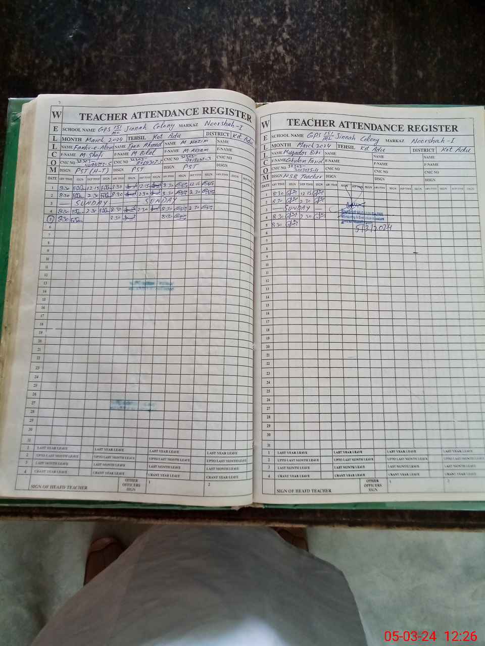 | CNIC | Full Name | Designation | R/C | Absence During Last Calender Month |