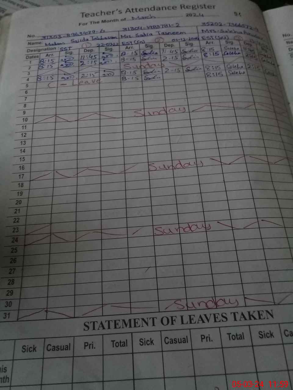 | 31**** | MHa**** Ab**** | BAILDAR | 0 | 0 | 29 | 0 | 0 | 0 | 0 | 0 | 0 | Absent (Un-Authorized) | |