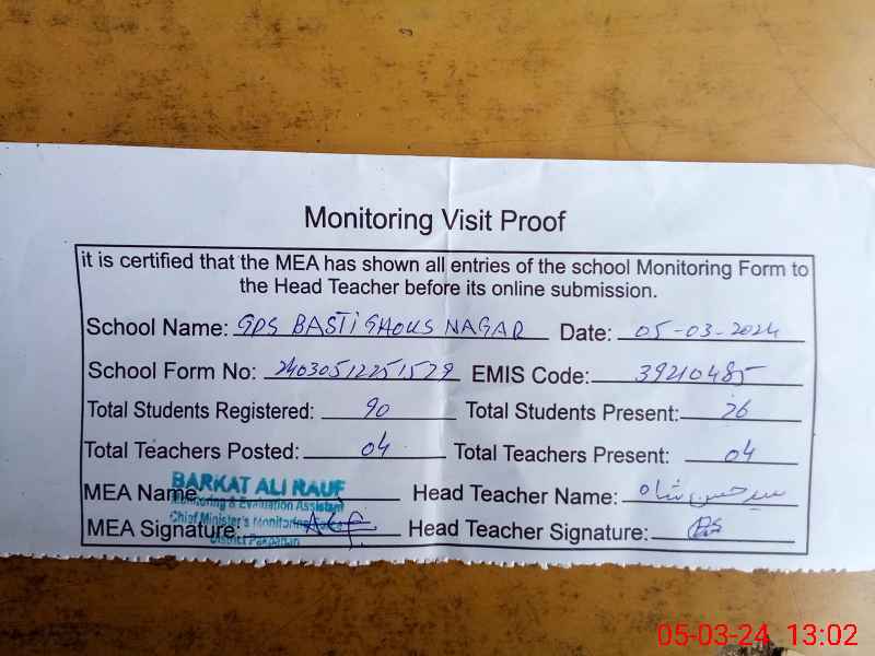 | EMIS Code: 39210485 | Name of School: GPS BASTI GHOUS NAGAR P/O PAKPATTAN | |||