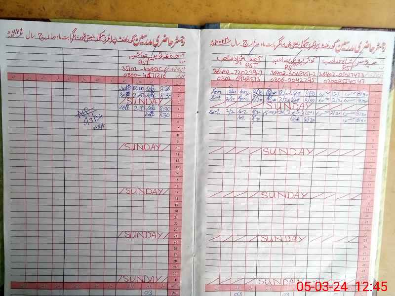 | Name: SY**** HA**** SH**** Designation: (School Headmaster's/Headmistress's) PST Phone/Cell Number: 03**** |