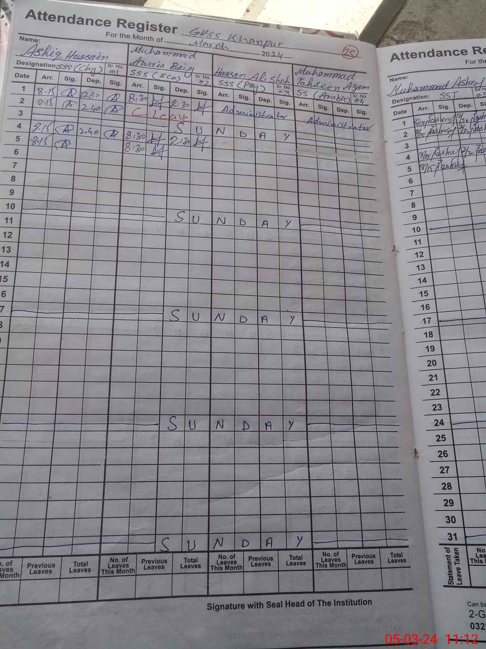 | 35**** | Ha**** Al**** Sh**** | 10 | 1 | 0 | 0 | 0 | 0 | 0 | 0 | 0 | 0 | 0 | Exam Duty |