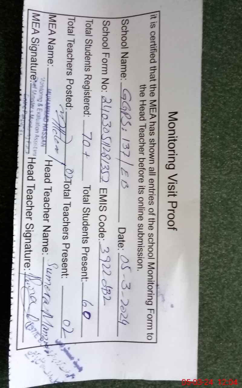| EMIS Code: 39220432 | Name of School: GGPS 137 EB PO 127 EB | |||