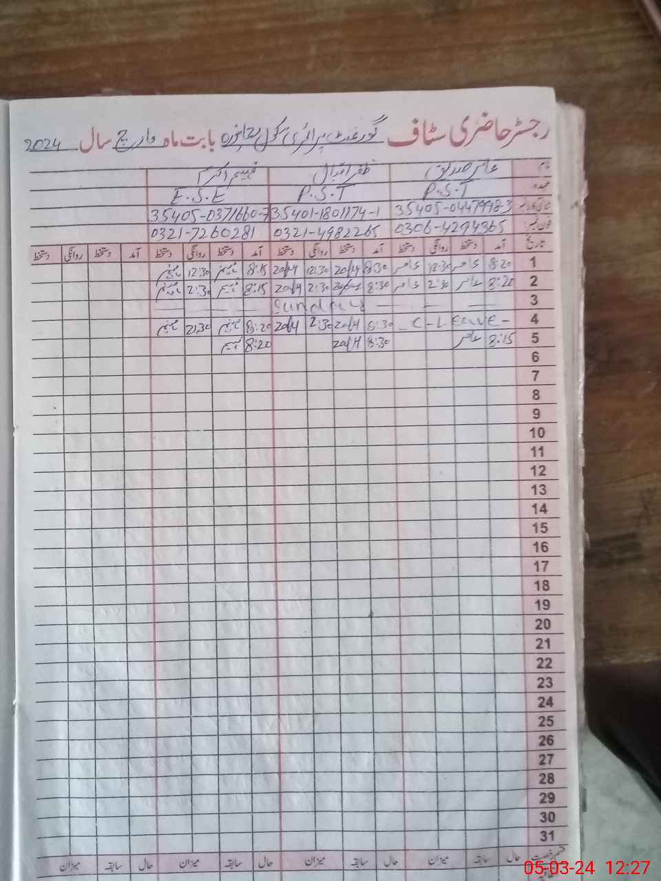 | CNIC | Full Name | Designation | R/C | Absence During Last Calender Month |