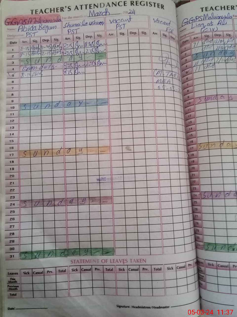 | Name: Ab**** Be**** Designation: (School Headmaster's/Headmistress's) PST Phone/Cell Number: 03**** |