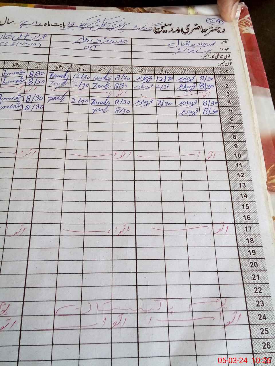 | Name: Mo**** Al**** Ar**** Designation: (School Headmaster's/Headmistress's) ESE Sci-math Phone/Cell Number: 03**** |