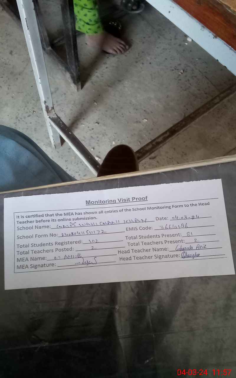 | EMIS Code: 36610186 | Name of School: GMPS WAHI CHANI KHAN | |||