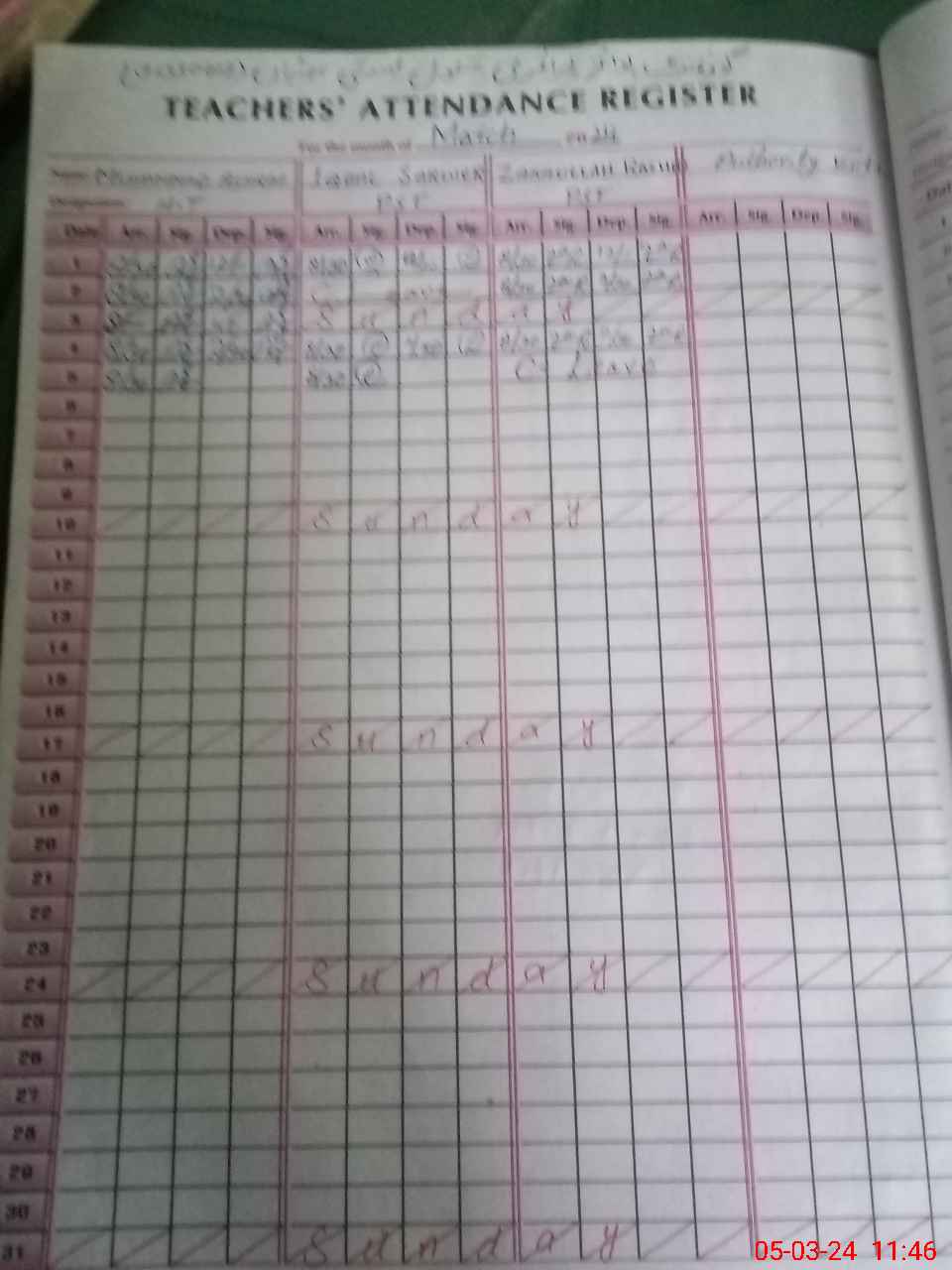 | CNIC | Full Name | Designation | R/C | Absence During Last Calender Month |