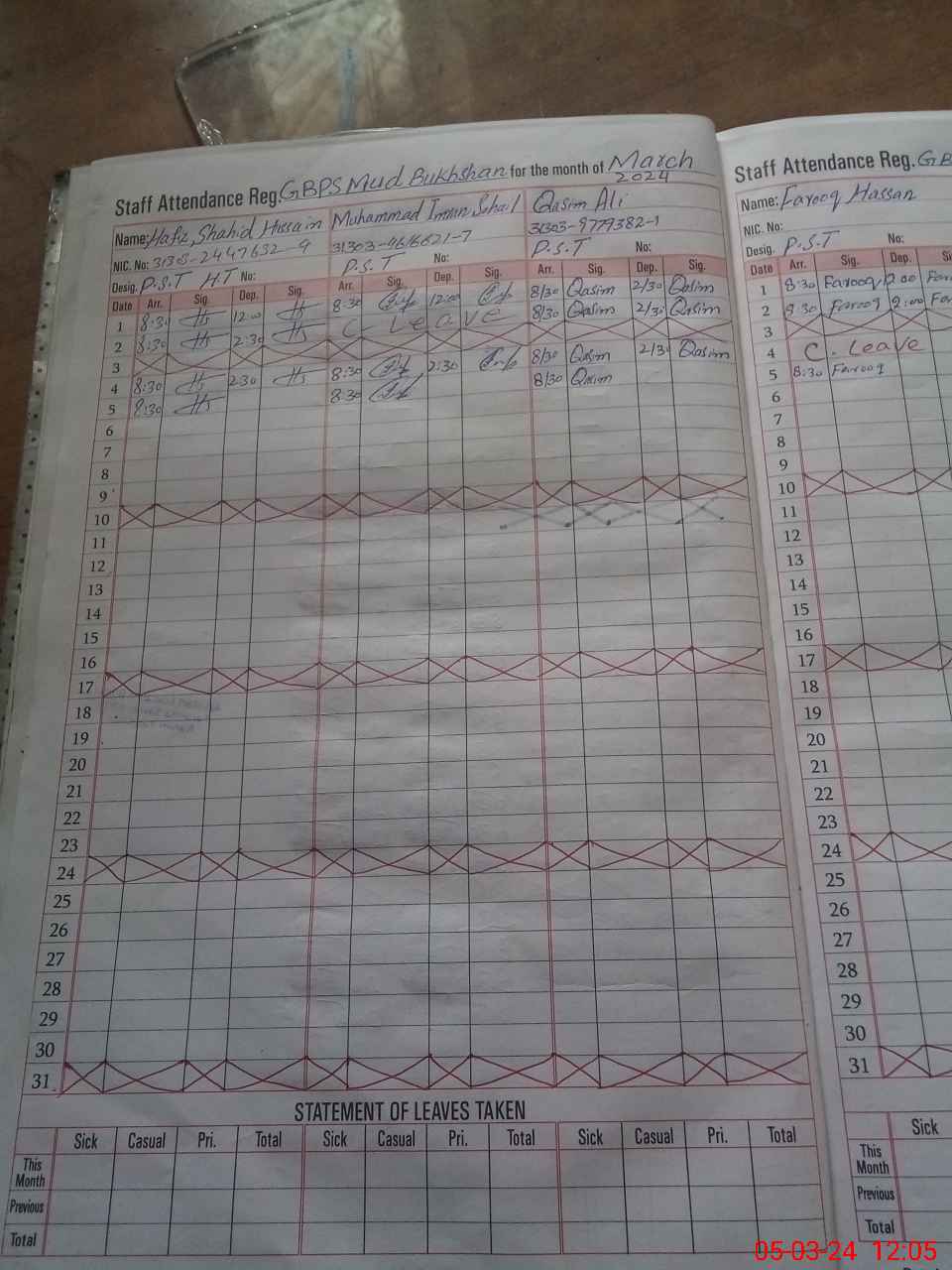 | CNIC | Full Name | Designation | R/C | Absence During Last Calender Month |