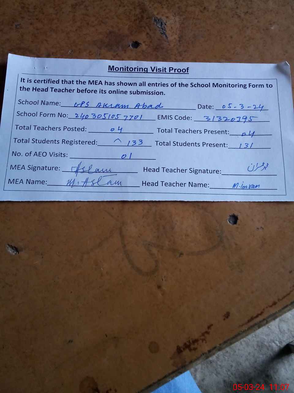 | EMIS Code: 31320395 | Name of School: GPS AKRAM ABAD | |||