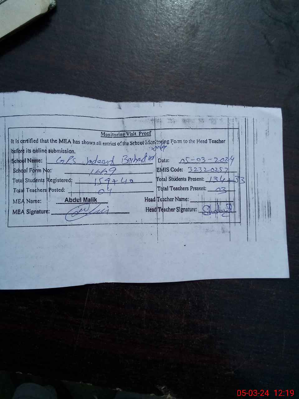 | EMIS Code: 32320257 | Name of School: GPS JADEED BAHADUR WALA | |||