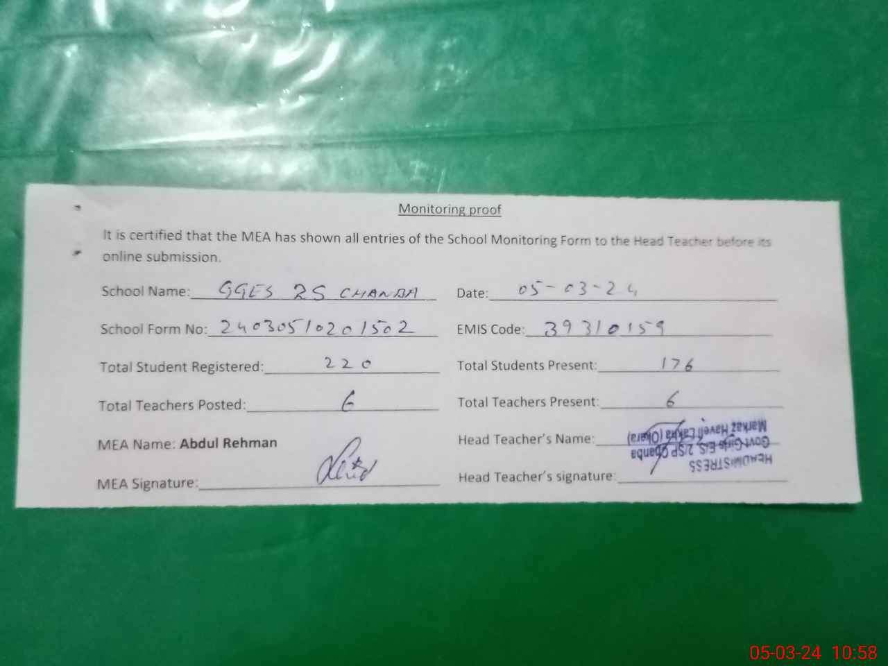 | EMIS Code: 39310159 | Name of School: GGES 2 SP CHANBA | |||