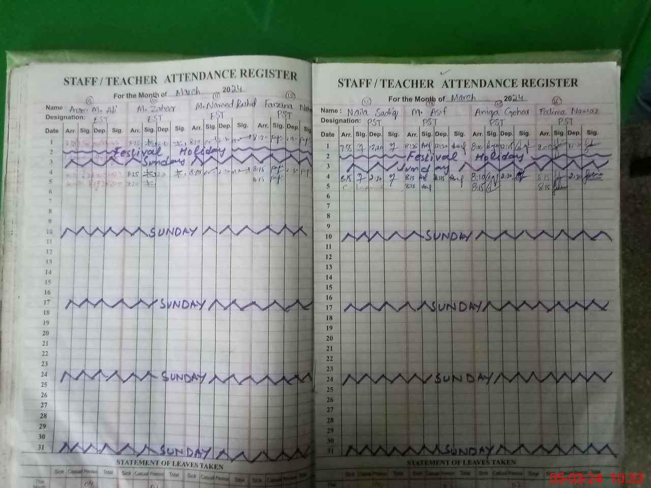 | 35**** | Gh**** Mu**** | Sweeper | Regular | 0 | 0 | 29 | 0 | 0 | 0 | 0 | 0 | 0 | Absent (Un-Authorized) |