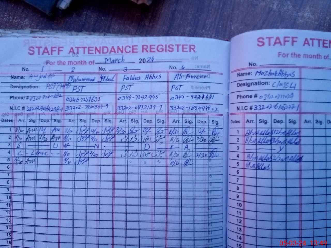 | Name: AM**** AL**** Designation: (School Headmaster's/Headmistress's) PST Phone/Cell Number: 03**** |